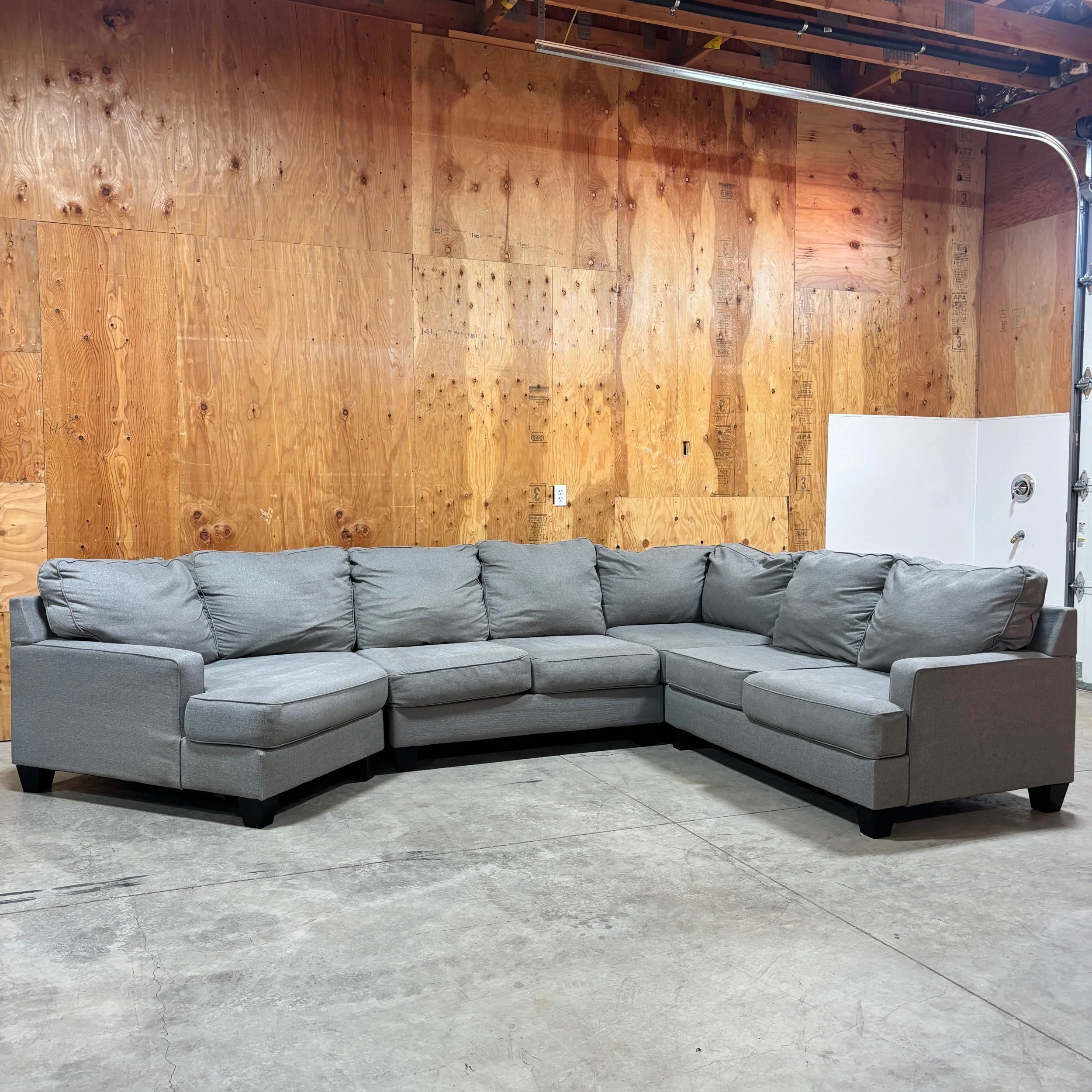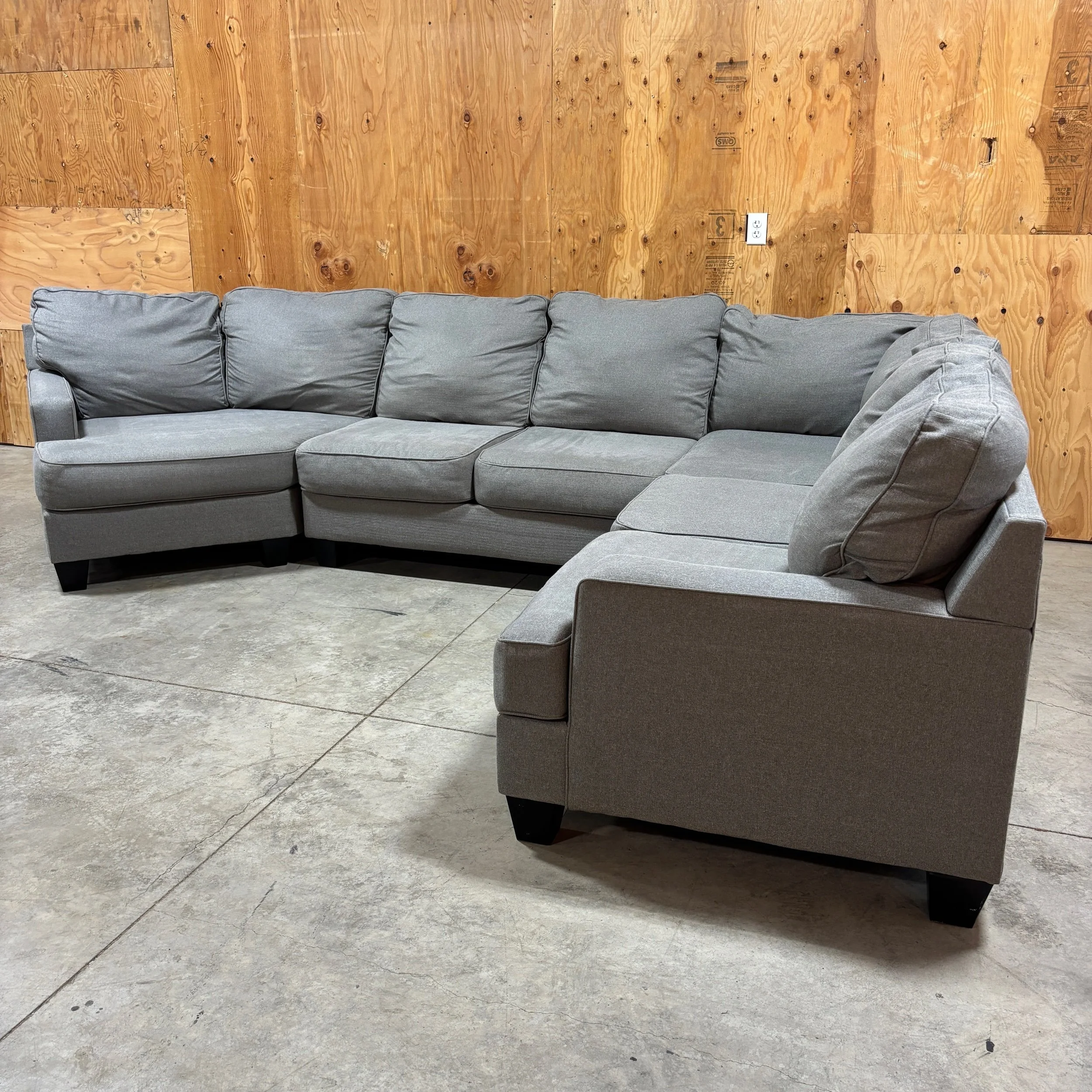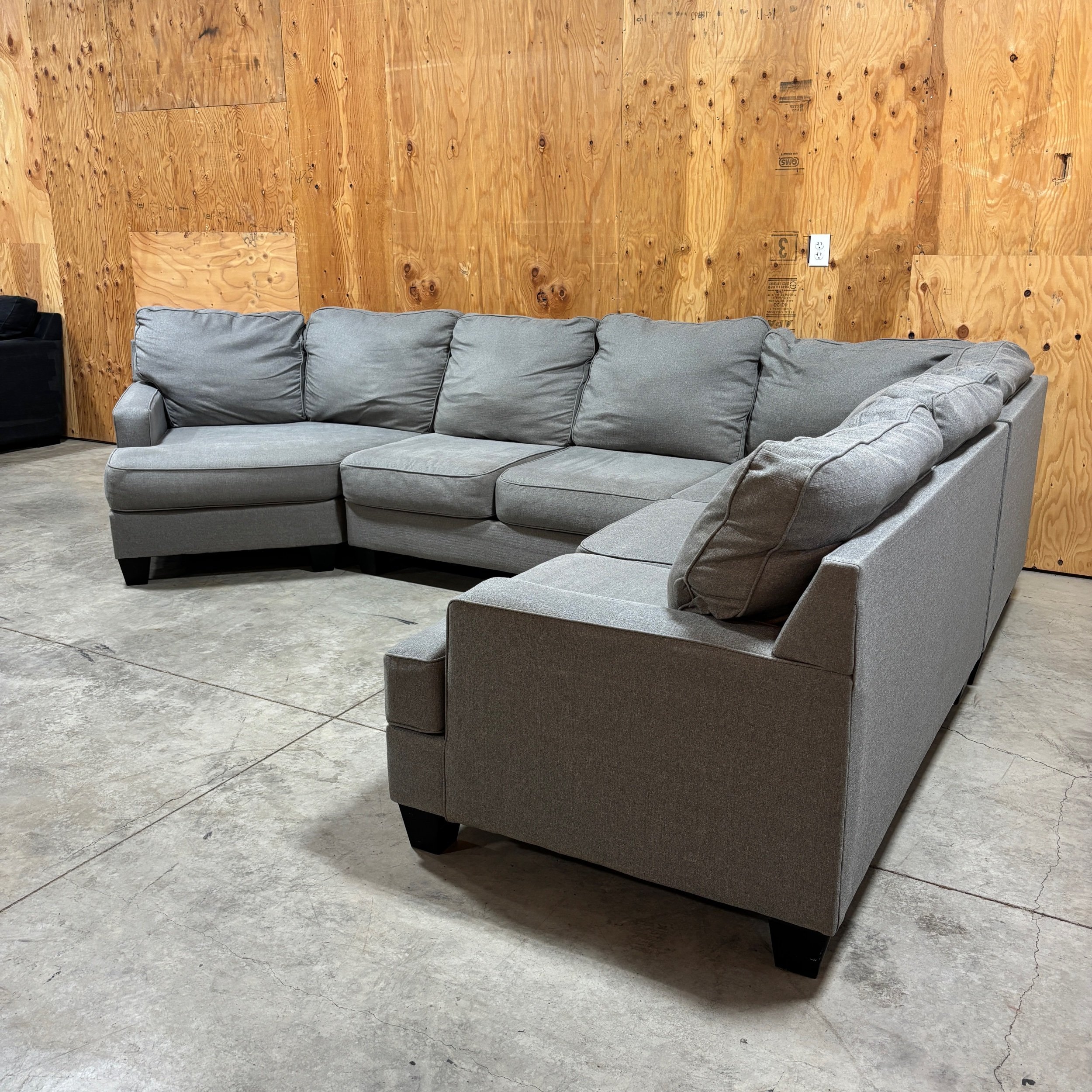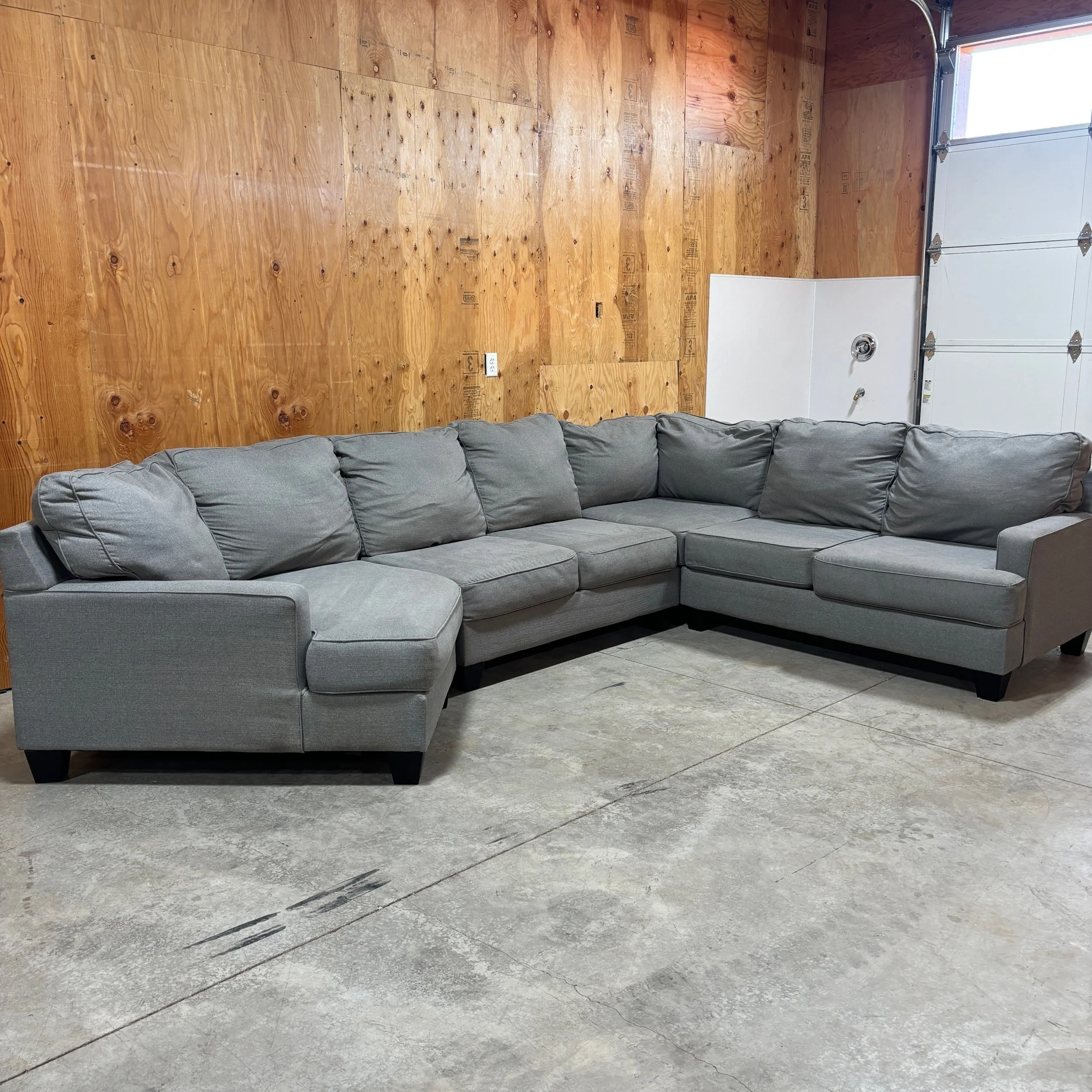 A spacious Ashley sectional with an oversized cuddler chaise, perfect for movie nights, guests, or stretching out with a book. This is a refurbished, used sofa from a pet-friendly home. Our team has professionally shampooed and detailed it so it’s fresh and ready for its next living room.