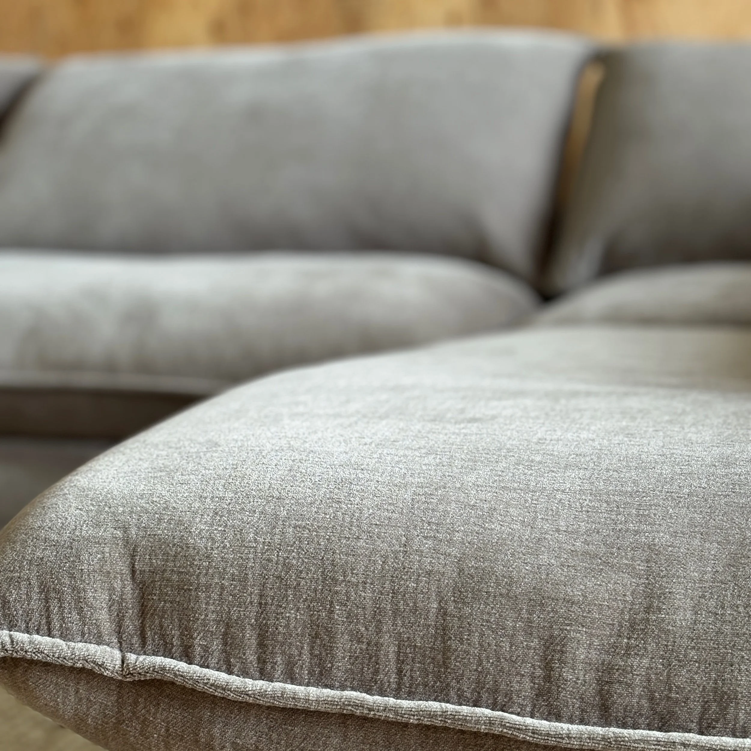 This is a great middle-ground version of the Sereen—same soft, lounge-heavy comfort, just in a slightly more manageable footprint. The deep seating and feather-blend cushions give it that “sink in and relax” feel people love, while the modular layout still lets you shape it to your space.
