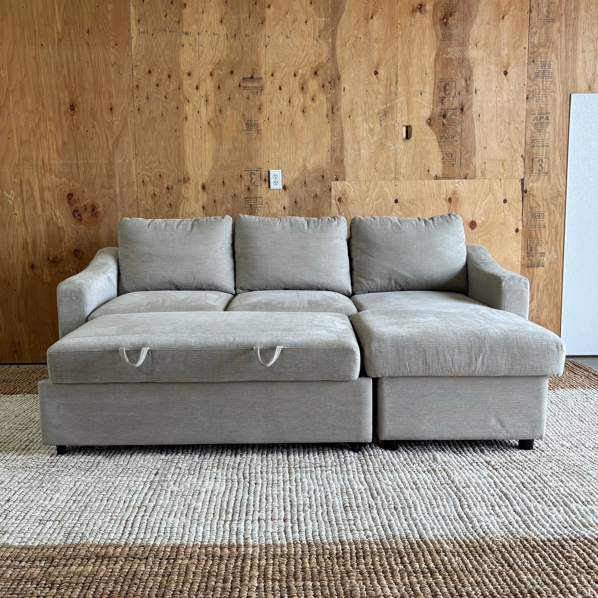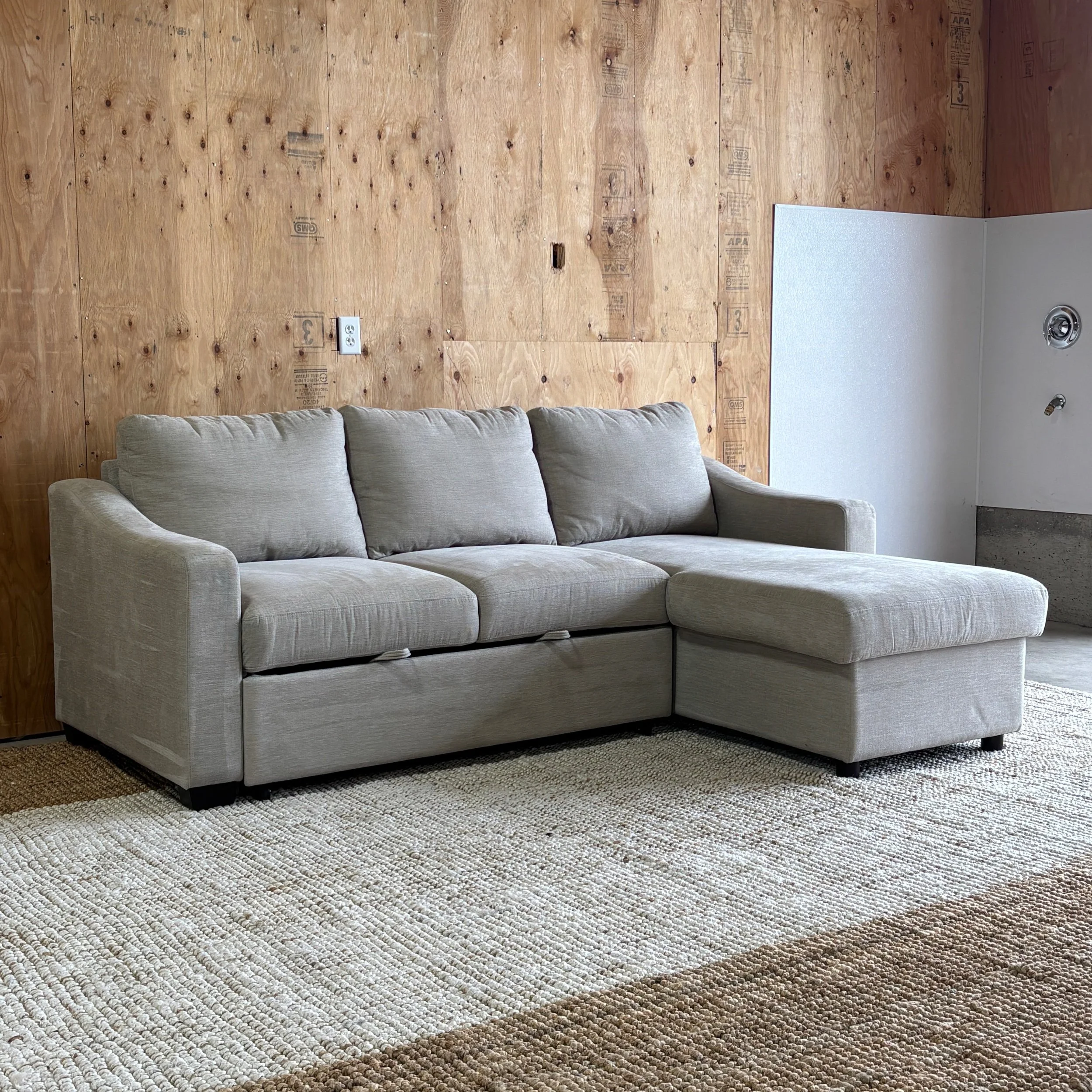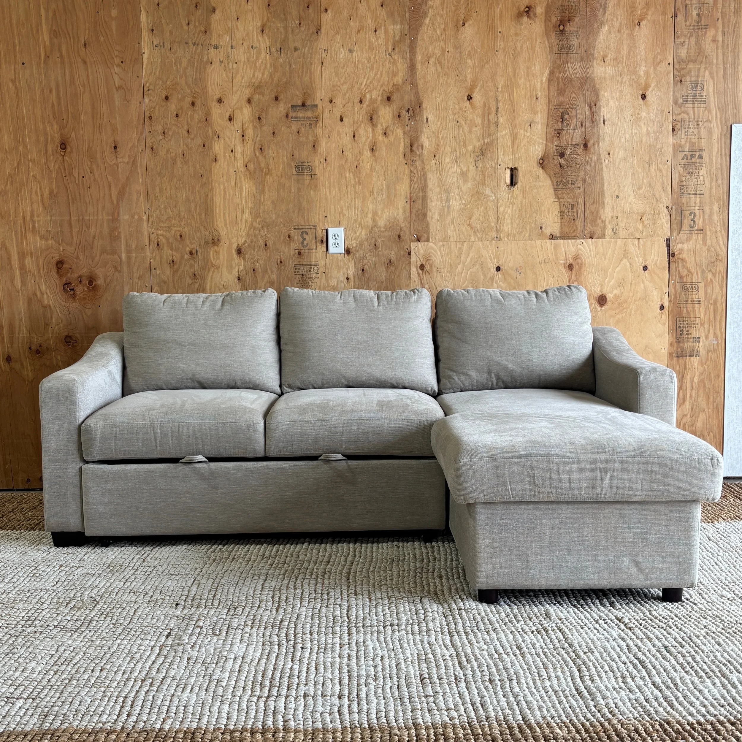 What people like about this one is how much it does without taking up a lot of space. The chaise flips to either side, the sleeper pulls out easily for two, and the storage compartment is big enough for blankets and pillows. The pocket coil and foam cushions hold up well for both sitting and sleeping, and the polyester fabric is easy to keep clean.