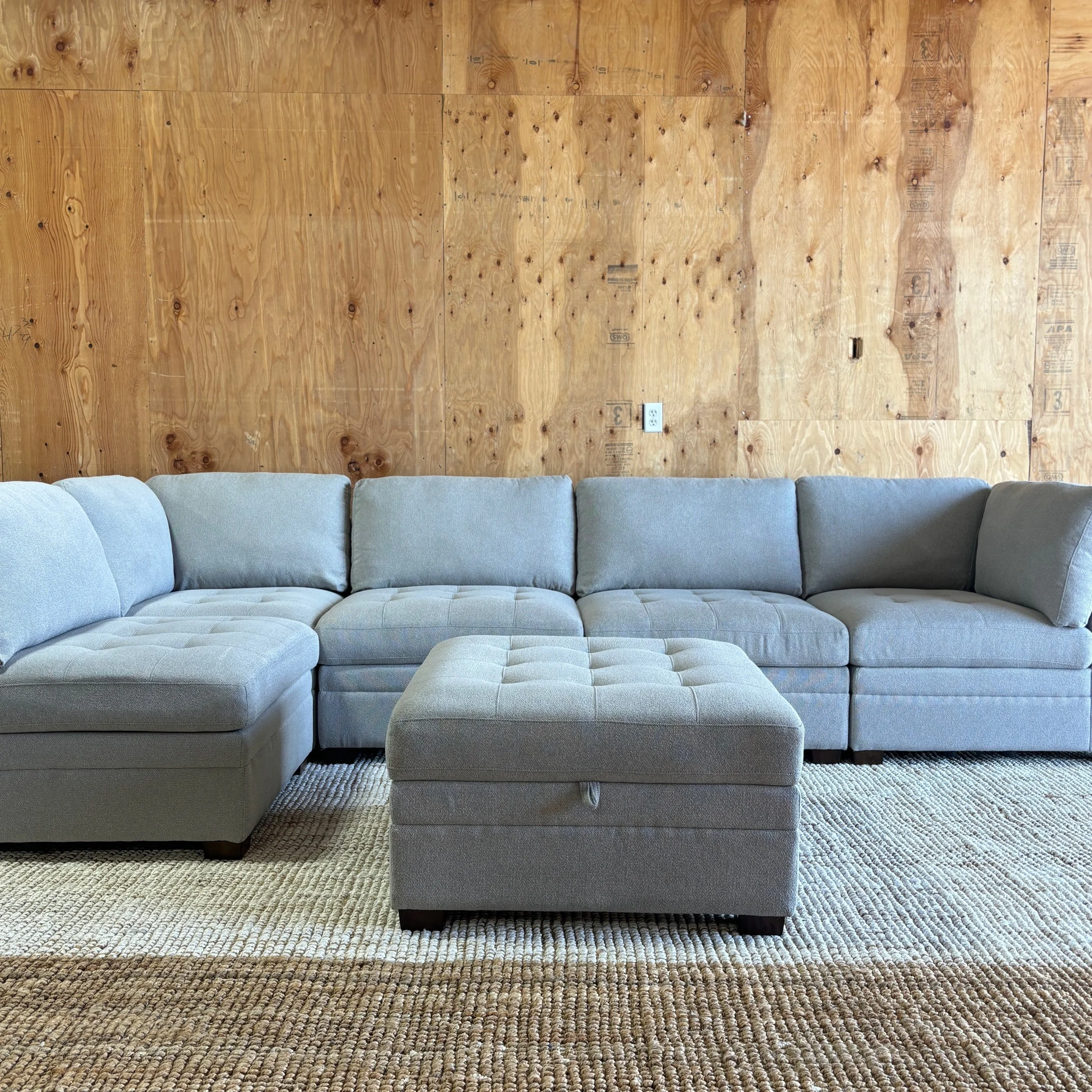People like this setup because it’s both comfortable and flexible. The modular design lets you rearrange it to fit your space, the seating has supportive pocket-coil construction, and the storage ottoman gives you a place to hide blankets and keep things clean. It’s a strong everyday sectional that feels a step above typical entry-level options.