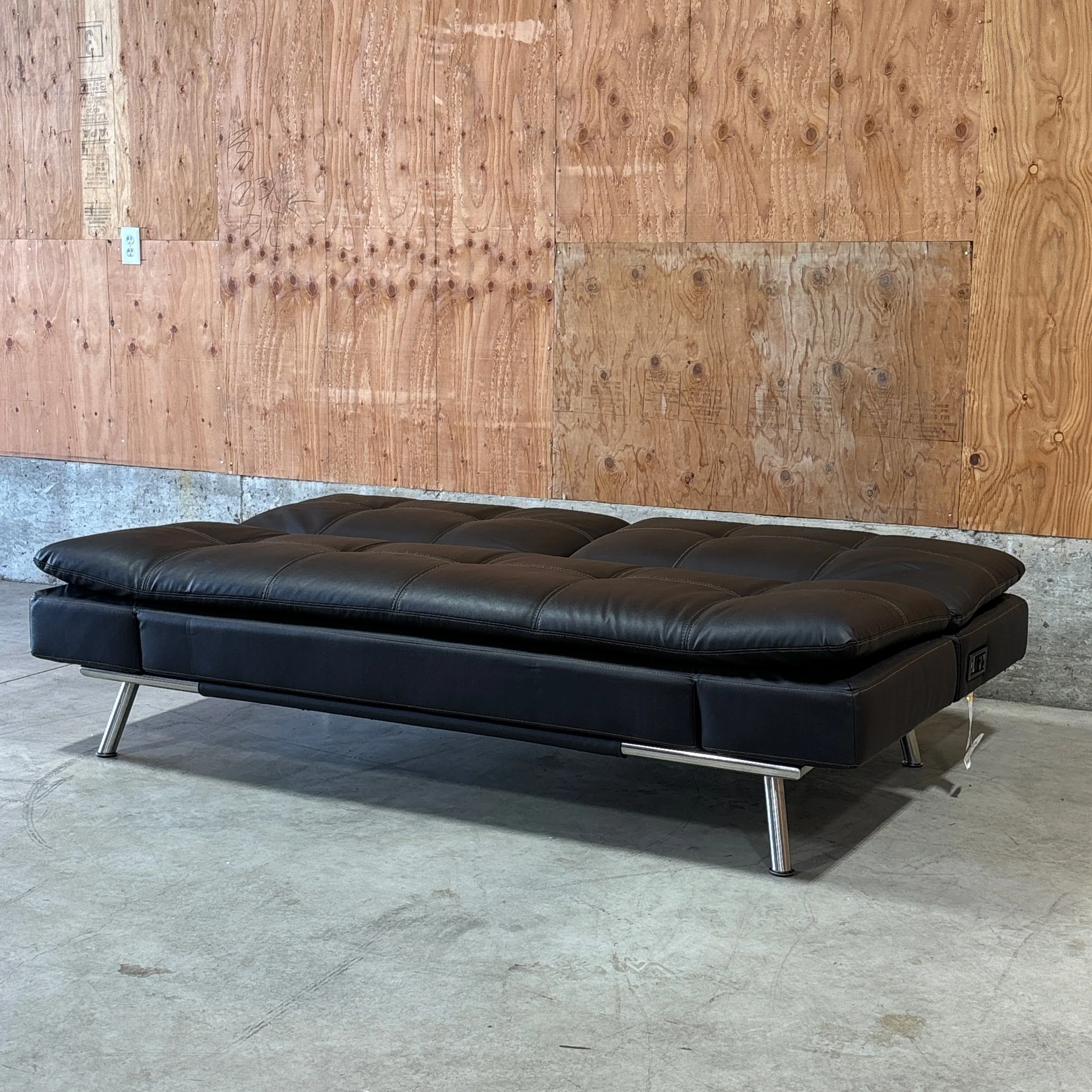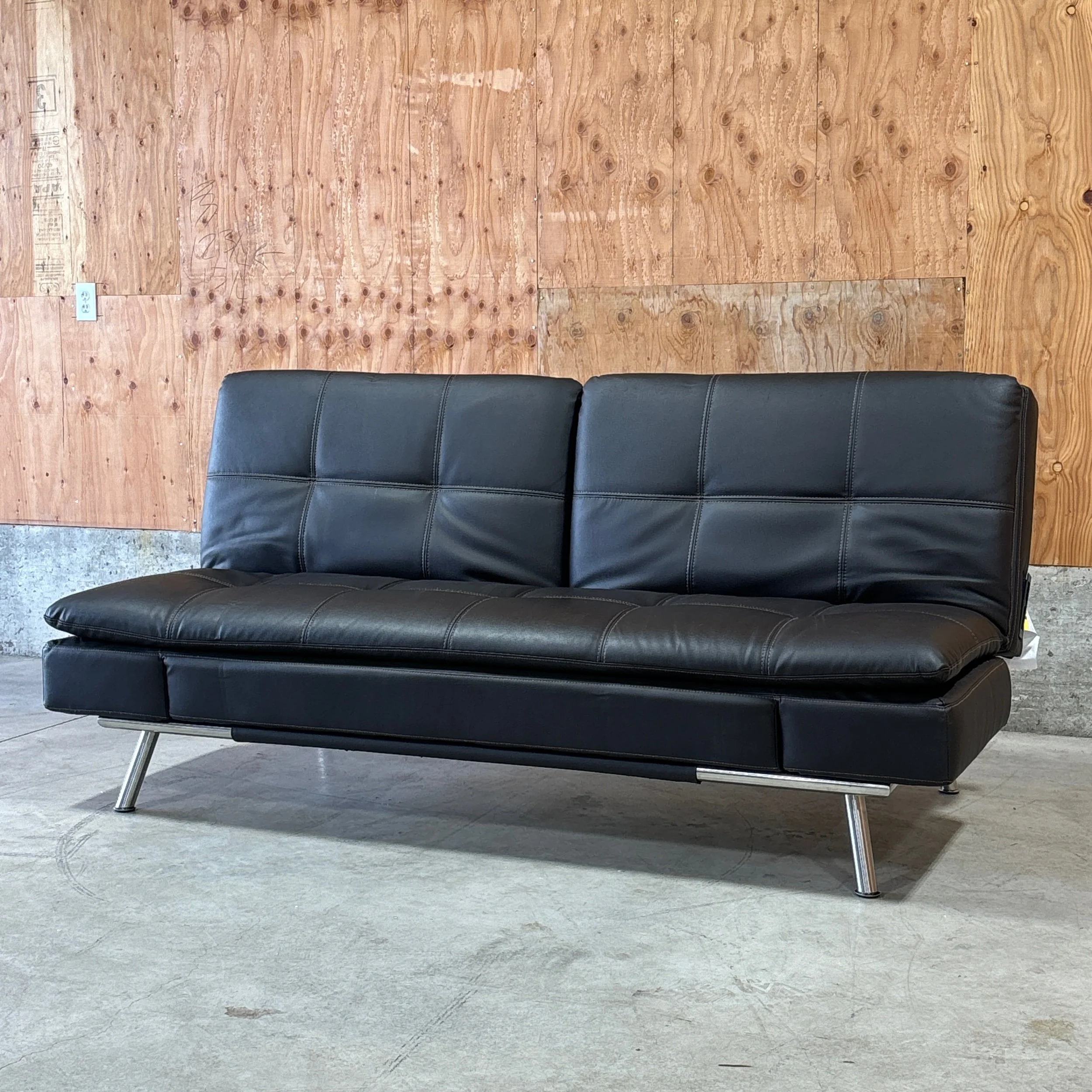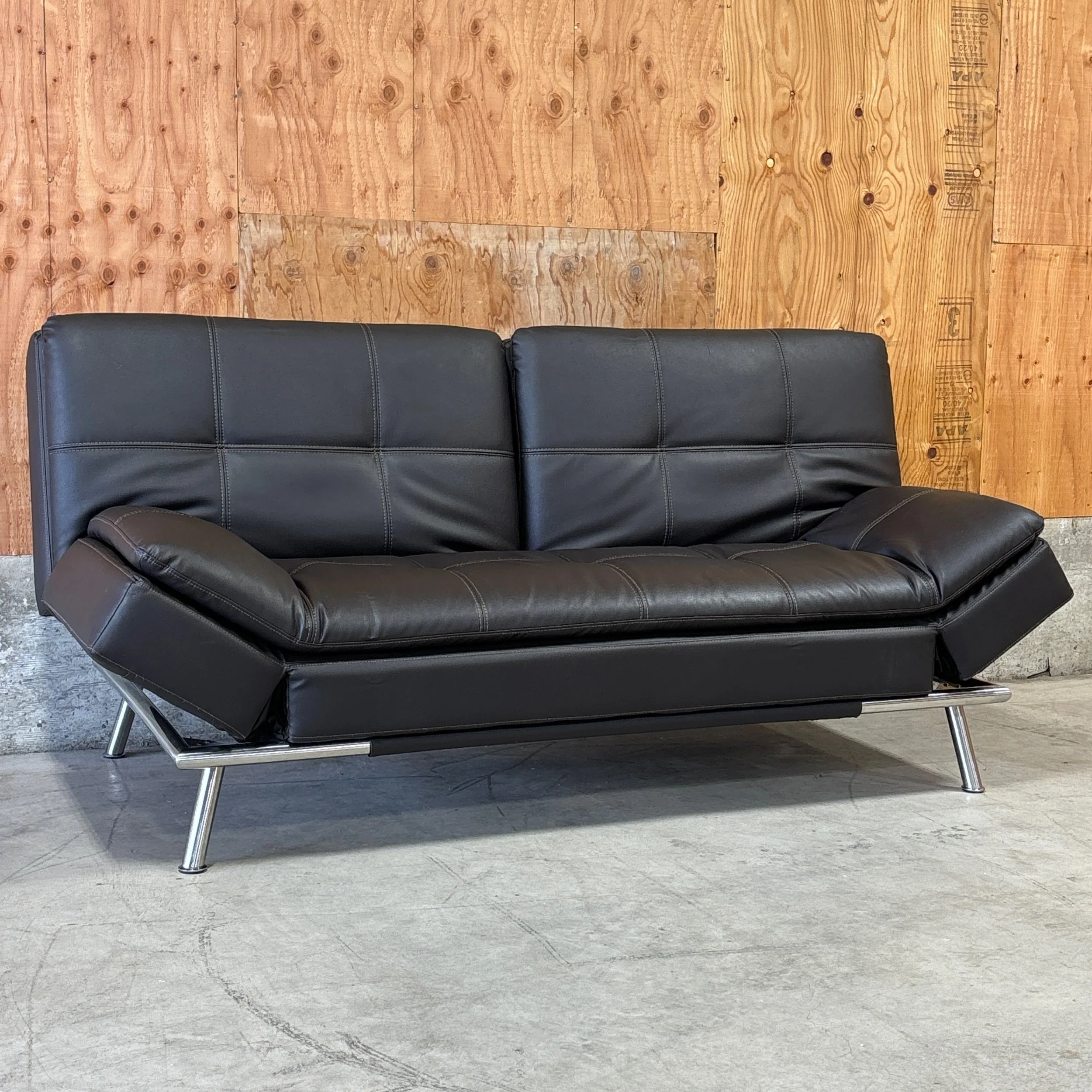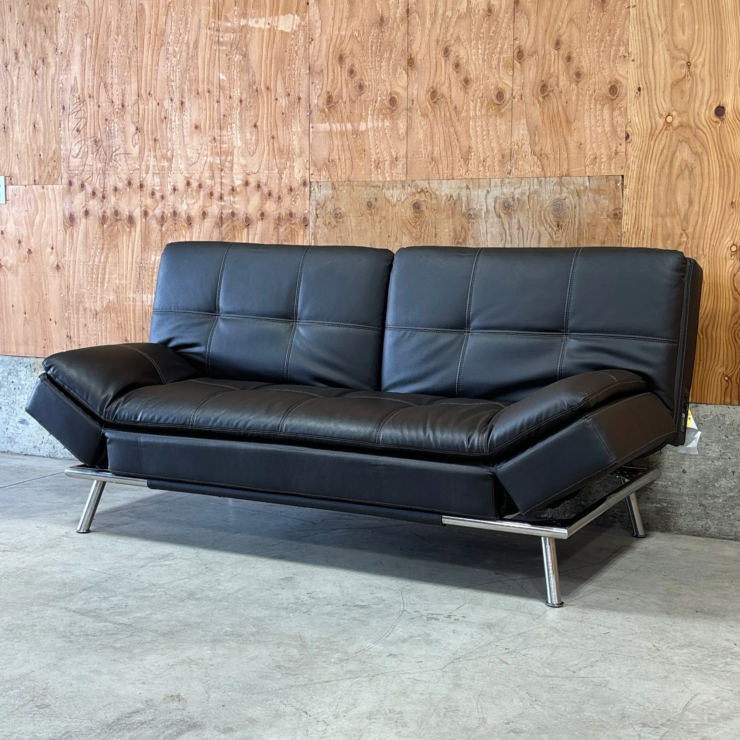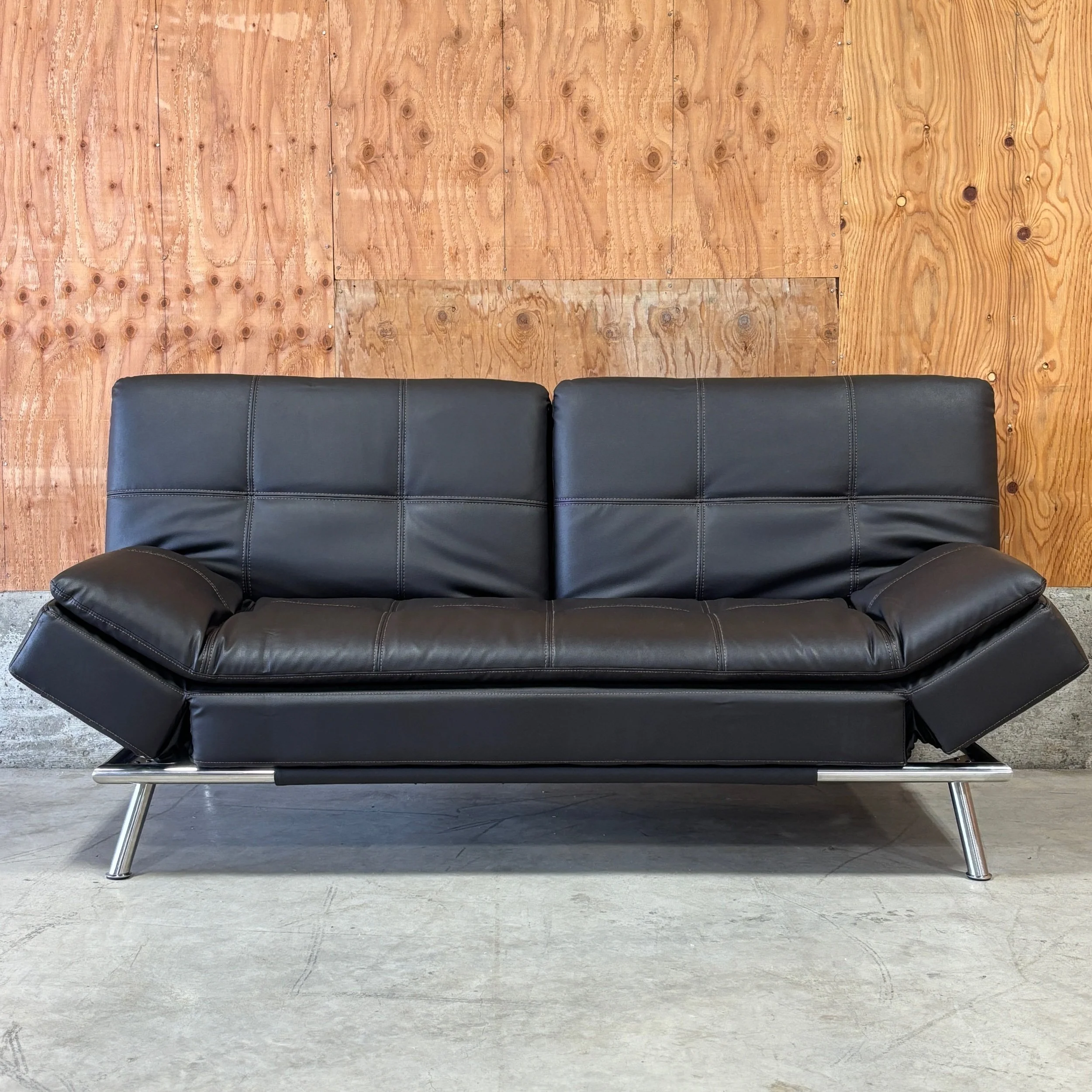 A sleek, space-saving euro lounger that works as a sofa, chaise, and sleeper all in one. The Ravenna features a high-density pillow-top design with memory foam cushions for comfortable sitting or sleeping. Upholstered in bonded leather with a modern, streamlined silhouette, it’s ideal for offices, guest rooms, or small living spaces that need extra functionality without sacrificing style.